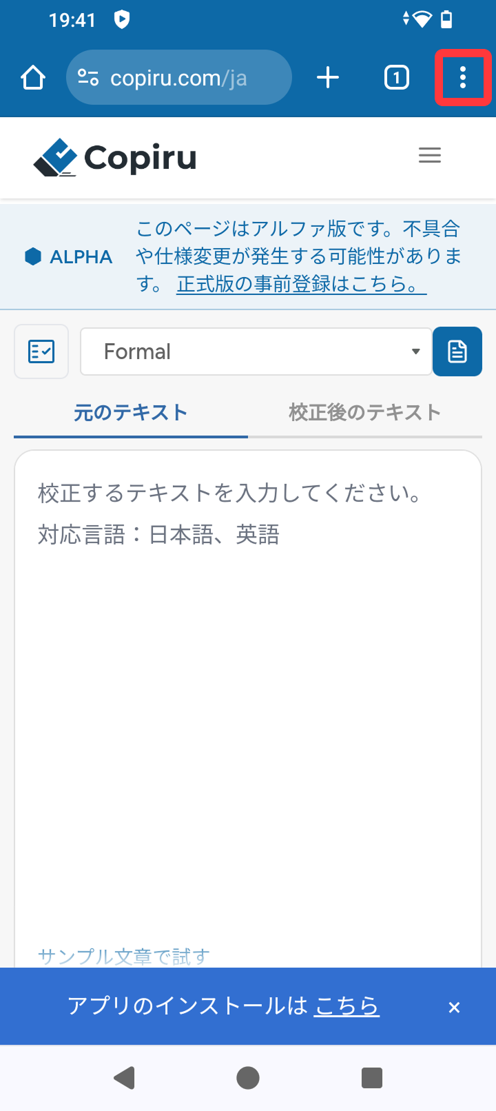 - ブラウザのアドレスバーの右側にあるインストールアイコンをクリックします。