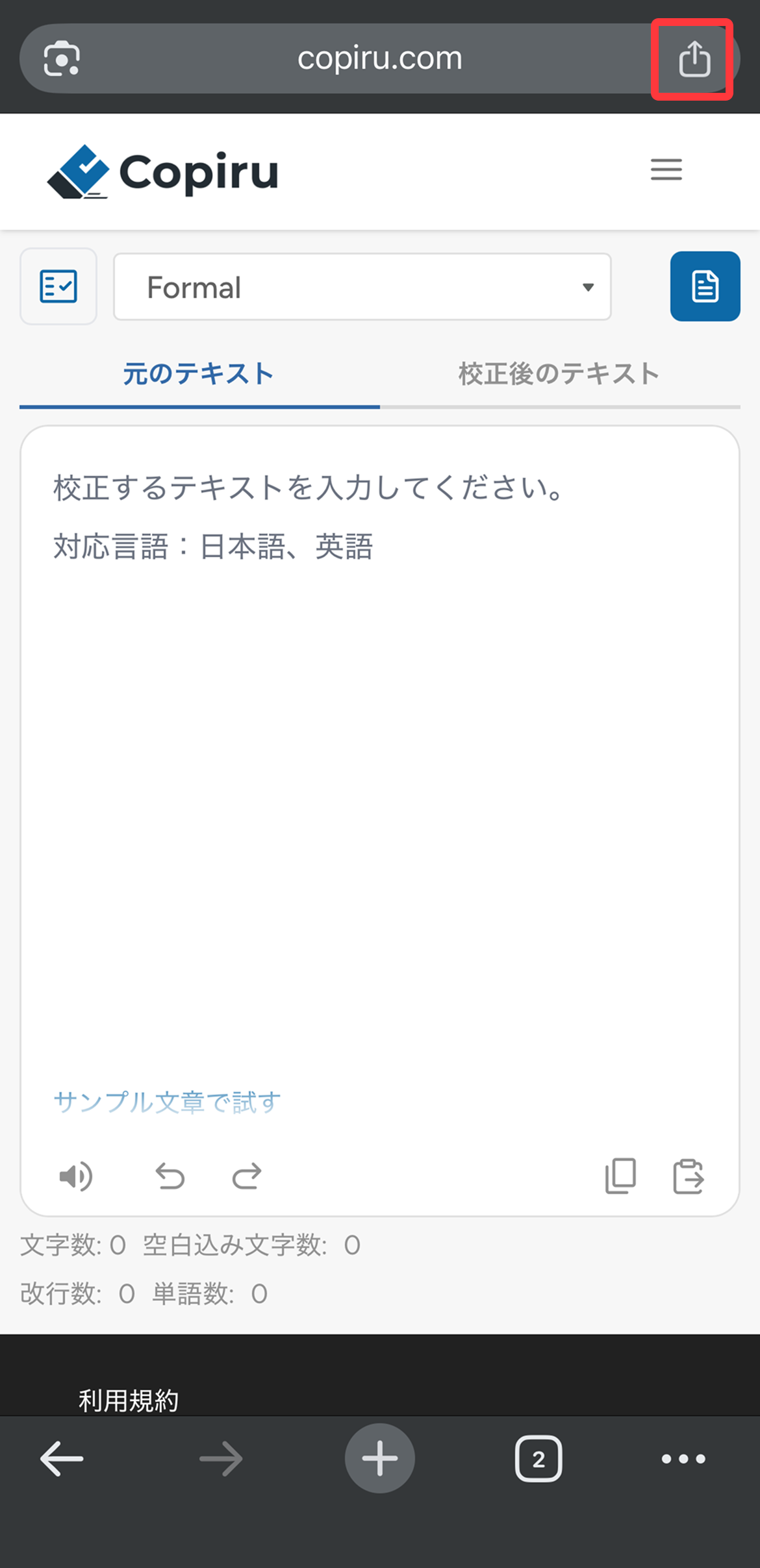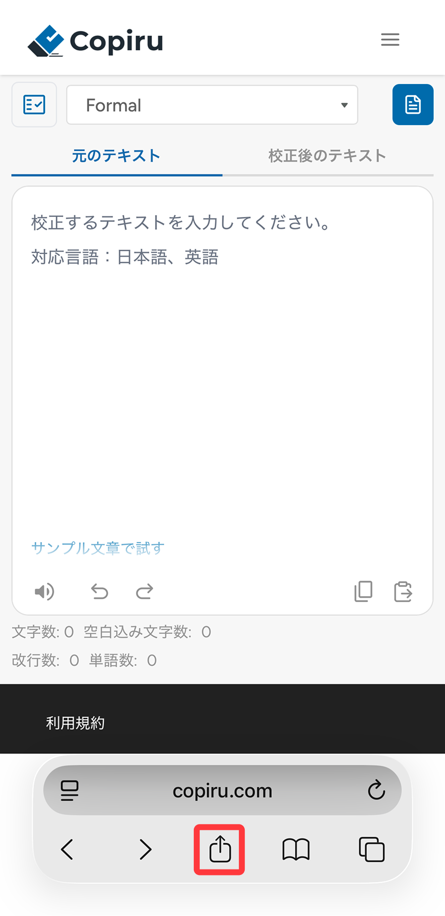 - 画面下の共有アイコンをタップします。
